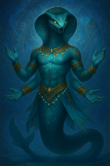 Masnits is the serpent god of water. Serpent fishermen, and technically all fishermen, pray to him when they venture into his watery domain. Masnits' blessings often lead sailors to great catches or steers them away from danger.