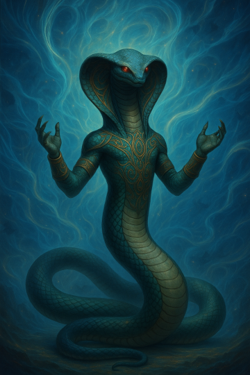 Ralnafelats is the serpent god of trickery and deception. His influence is found all throughout the Serpent Theocracy - politics, trade, and even day-to-day interactions. Ralnafelats revels in illusions and artifices. Ralnafelats tangles his webs with Itngar's fate-strings, weaving a tapestry that is nearly impossible to truly understand by all but the most experienced serpent priests.